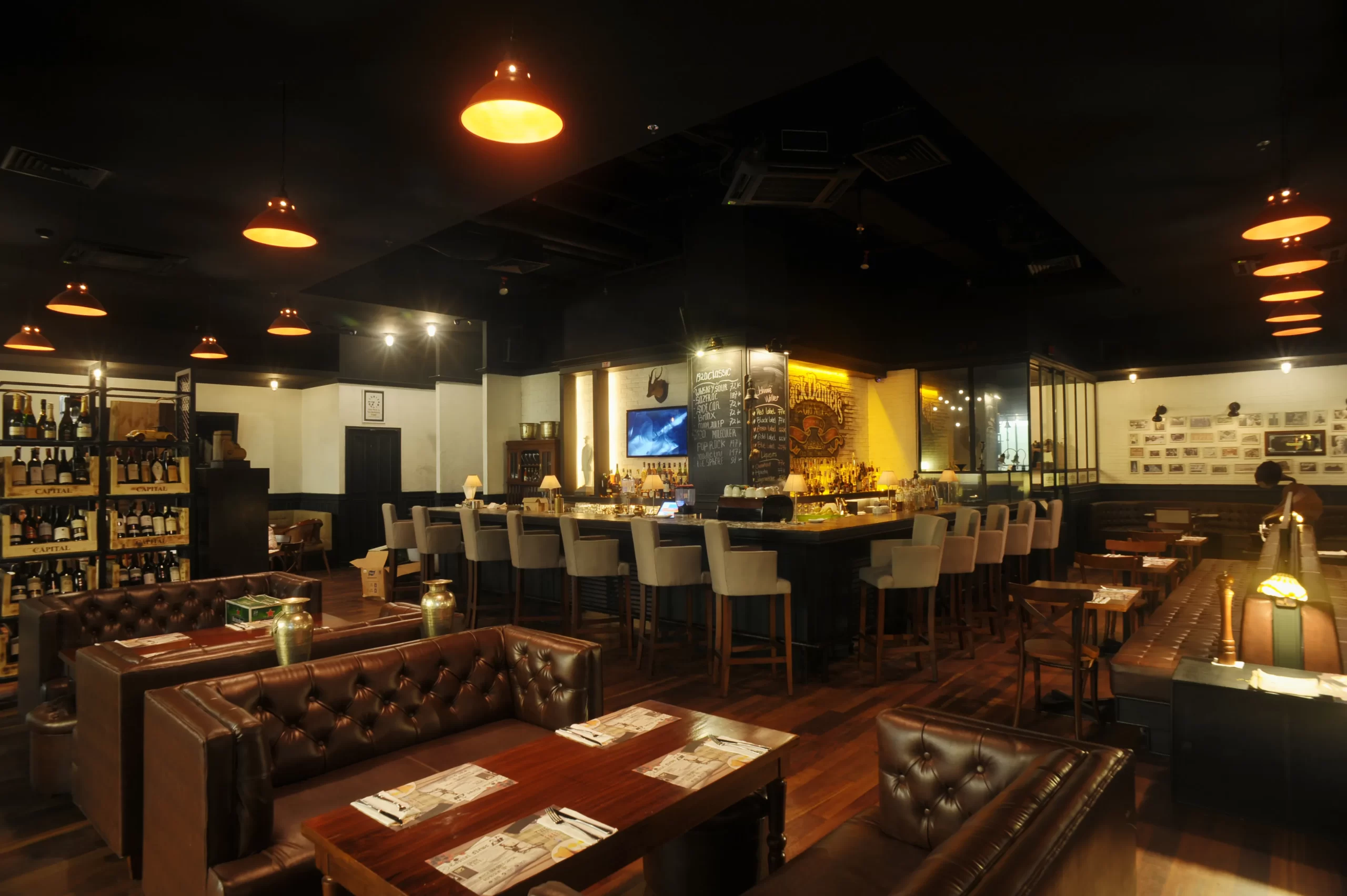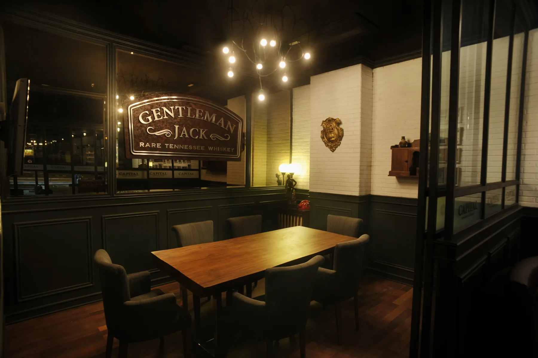 The design intent is to reminisce the 1920s classic American atmosphere in an enjoyable environment. The use of dark timber panel, exposed white brick, timber floor, mosaic, classic furniture, and vintage light fittings, illustrates the timeless style while the integration of materials such as rustic metal gives the space a more contemporary look. Adorned with vintage pieces such as gramophone and suitcases from the owner’s personal travel collectables, the richness of elements offers a profusion visual stimulation.